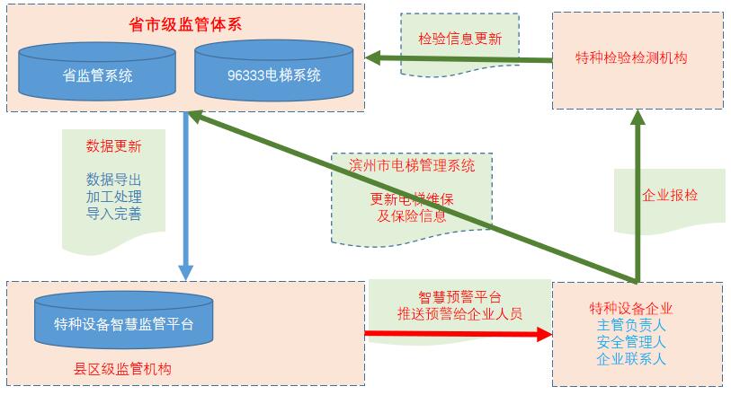 “特种设备智慧监管平台”系统,是“省市级监管系统和体系”在基层的延申和辅助,并与“省市级监管体系”形成完整的管理闭关。★以特种设备检验预警为例,智慧监管平台与“省市级监管体系”形成完整的管理闭关。